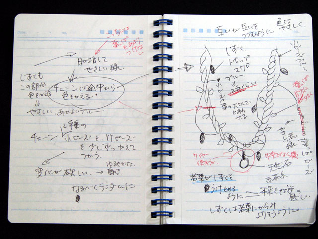 赤茶色の天然石は「種」で、また、日の光を少し当てた感じにするために、雨の色もわざわざ2色にして下さいました。(スライム9%様の解説をまとめました)